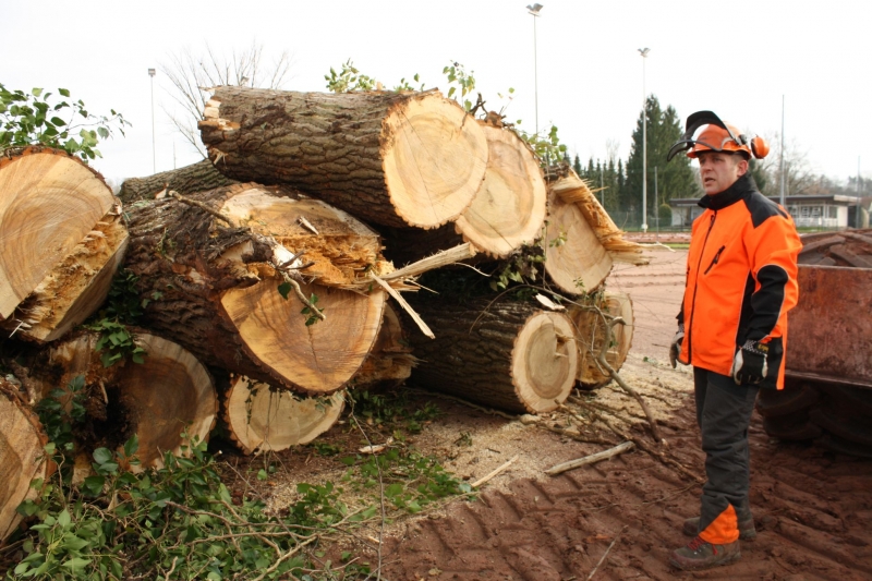 "Sehr viele der Bäume sind morsch oder sogar hohl oder zeigen deutliche Bissspuren von Bibern", sagt Harald Würtenberger, was wir auch auf den Fotos deutlich sehen können. Aber auch für ihn, der alles bestens im Griff hat, ist dies etwas ganz Besonderes: "So eine Aktion mit so hohen Bäumen bis 35 Meter Höhe erlebt man in der Firmengeschichte sicherlich nicht oft".