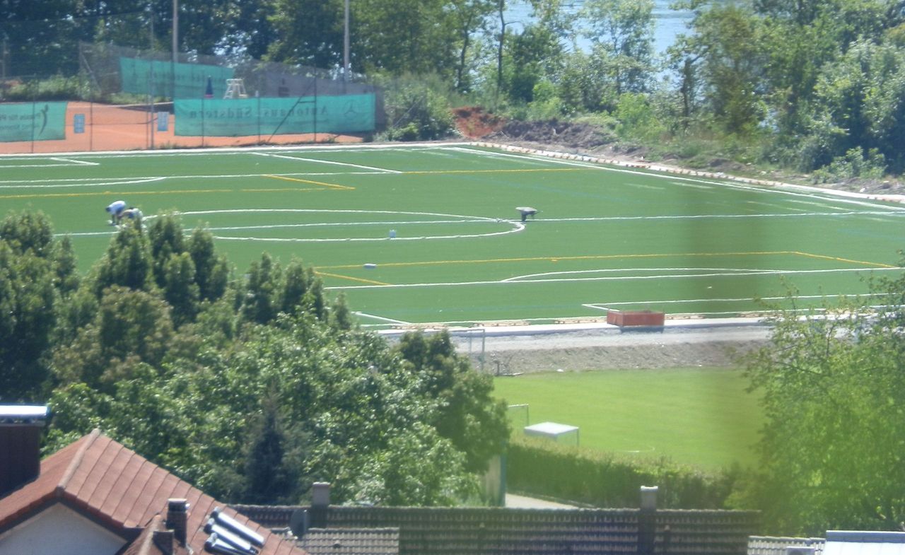 Es fehlen noch die Tore und Eckfahnen. Im Laufe des Monats August sollte aber das neue Grün bespielbar sein.