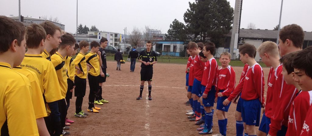 Vor dem Spiel gegen den Tabellennachbarn der SG Schlüchttal waren die VfB-C1-Junioren sehr konzentriert. Die Heimmannschaft startete wie die Feuerwehr und setzte den Gegner schnell unter Druck.