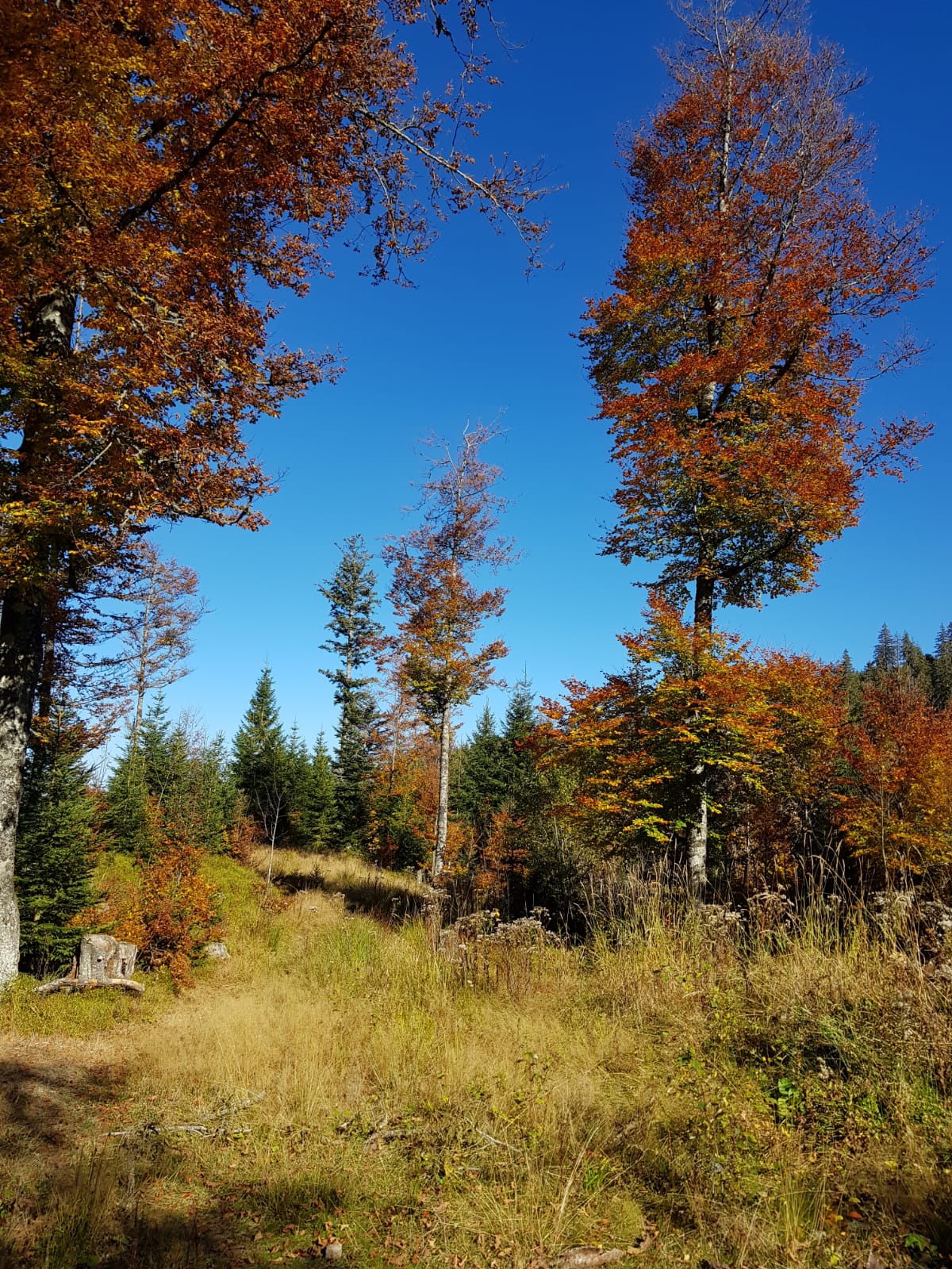 Am Sonntag ging es nach dem Frühstück weiter über Herrenschwand bis zum Ziel in Todtmoos. Auch dieser Weg sorgte dafür, dass das Wanderhemd nicht trocken blieb. Die Sonne und der herrlich bunte Herbstwald bei schon erwähnt sommerlichen Temperaturen sorgten für große Freude über die zwei herrlichen Wandertage.
